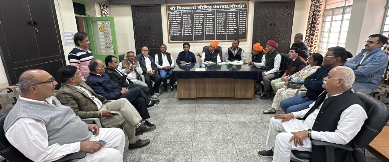 श्री विश्वकर्मा नवचेतना समिति की कार्यकारिणी की बैठक समिति के अध्यक्ष बाबूलाल धामू की अध्यक्षता में आयोजित हुई। समिति के सचिव महेश कींजा ने बताया कि विश्वकर्मा जयंती के अवसर पर महादेव नगर, बासनी स्थित प्लॉट पर सुबह 9.30 बजे से हवन व पूजा तथा 11.30 बजे विशेष झांकी लेकर मसुरिया स्थित श्री विश्वकर्मा छात्रावास पहुंचकर शोभायात्रा में शामिल होंगे।इस मौके श्री जांगिड़ पंचायत वरिष्ठ उपाध्यक्ष ज्योतिस्वरूप धनेरवा, उपाध्यक्ष सोनाराम बुढल, कोषाध्यक्ष वीरेन्द्र भाकरेचा, सहसचिव सुरेश कुलरिया, डी.पी. शर्मा, मंदिर कमेटी के कोषाध्यक्ष सीए गोपीकिशन जांगिड़, सहसचिव हुकमाराम झिलोया, रामदयाल जादम, विनोद आसलिया, रविंद्र सलूण, रामदेव पालेचा, गुलाब राम झीटावा, एडवोकेट सुरेश कुमार शर्मा, गणपतलाल गेपाल, पुखराज पलोल, जीतेश कुलरिया आदि उपस्थित रहे।