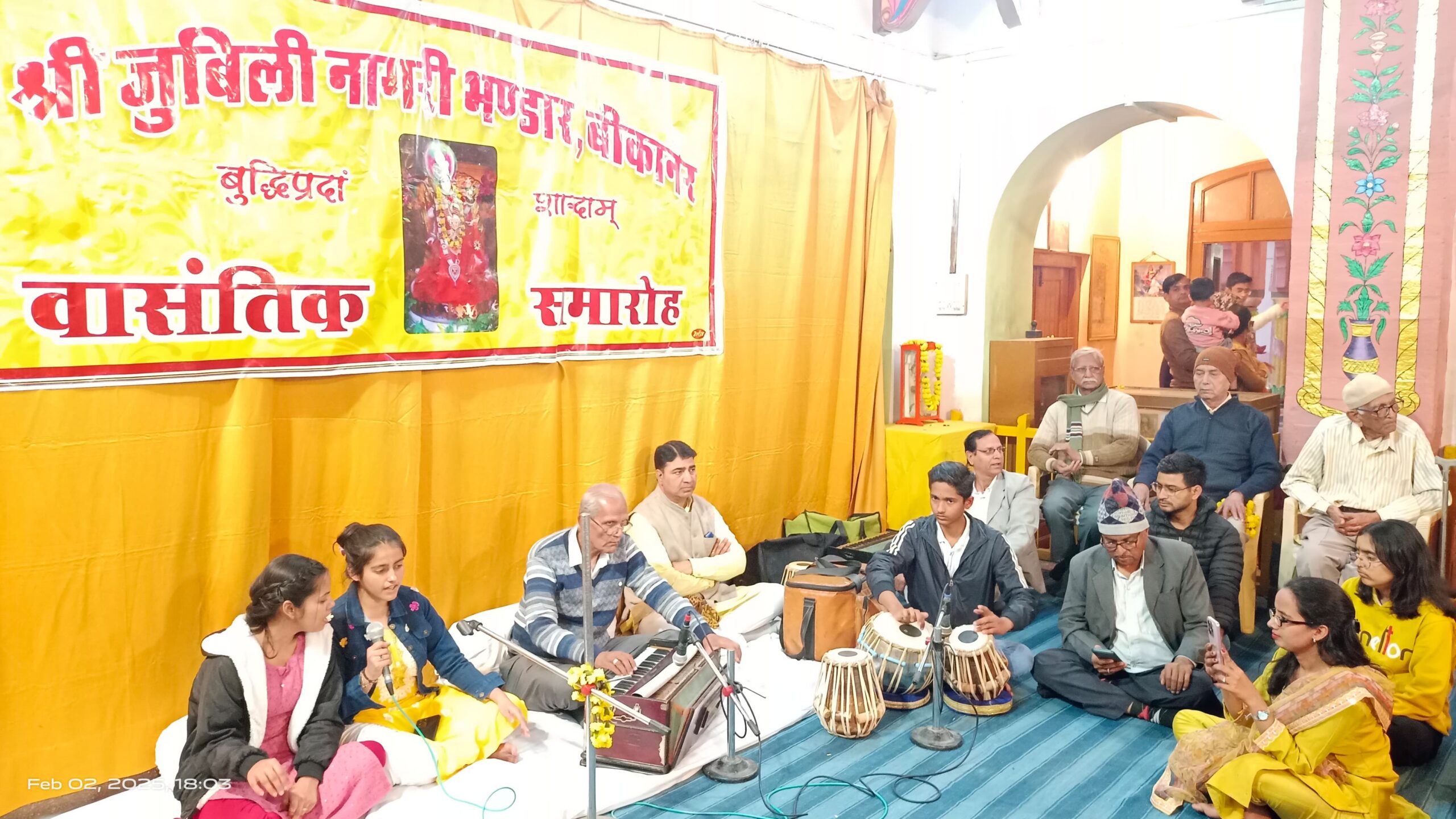 श्री जुबिली नागरी भण्डार ट्रस्ट के 118वें स्थापना दिवस एवं वसंतोत्सव के अवसर पर आयोजित हो रहे तीन दिवसीय वासंतिक समारोह के अंतिम दिन नागरी भण्डार स्थित सरस्वती मंदिर प्रांगण में भव्य सांस्कृतिक संध्या आयोजित की गई, जिसमें संगीत की स्वर लहरियों एवं नृत्य की मनमोहक प्रस्तुतियों ने समस्त आगंतुकों को भाव विभोर कर दिया।