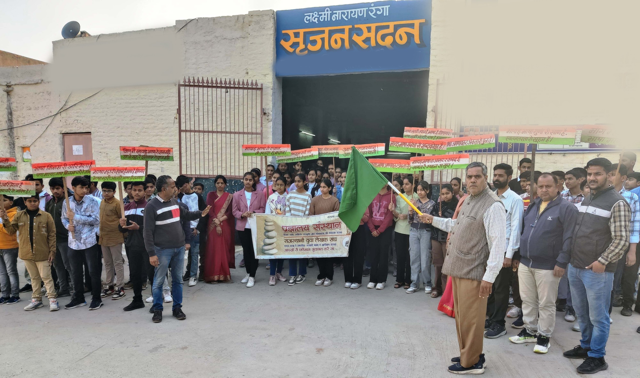 अंतरराष्ट्रीय मातृभाषा दिवस के अवसर पर प्रज्ञालय संस्थान एवं राजस्थानी युवा लेखक संघ द्वारा हर वर्ष की भांति इस वर्ष भी राजस्थानी भाषा मान्यता को समर्पित तीन दिवसीय समारोह का आगाज आज प्रातः लक्ष्मीनारायण रंगा सृजन-सदन से प्रदेश की दूसरी राजभाषा राजस्थानी शीघ्र घोषित हो की मांग को लेकर एक रैली से हुआ। जिसका शुभारंभ वरिष्ठ शिक्षाविद् एवं राजस्थानी समर्थक राजेश रंगा ने हरि झंडी दिखाकर किया।