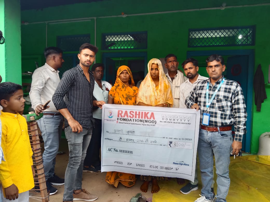 बेटी बचाओ बेटी पढ़ाओ अभियान के तेहत रशिका फाउंडेशन द्वारा दो बेटियों की शादी पर कन्यादान के रूप मे 3100 और 2100 रुपयों की सहयोग राशि भेंट की गई।
