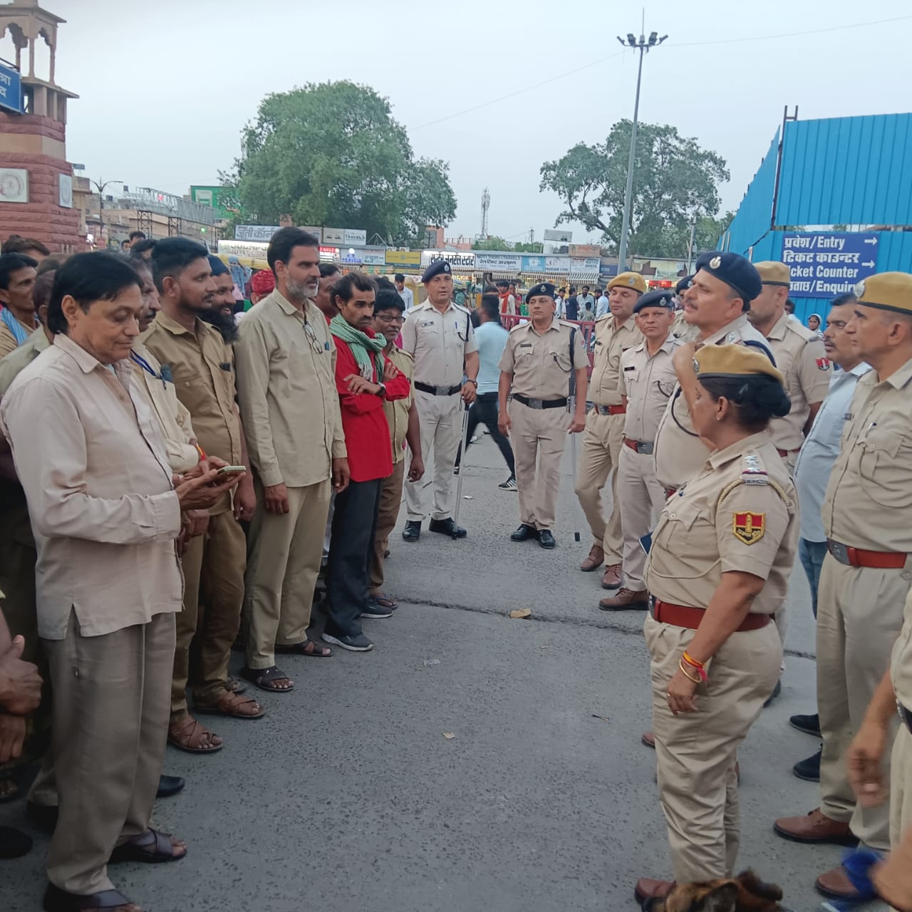 भारत-पाक के तनाव को देखते हुए आज जोधपुर रेल्वे स्टेशन जोधपुर पर रेल्वे प्लेटफॉर्म पर संघन गस्त चैकिंग की गई व मौजूदा रेल यात्रीयो व टेक्सी चालको, रेलवे कर्मचारी, कुली, वैण्डर, सफाईकर्मी आदि को भ्रमक झूठी अफवाहो के सम्बन्ध मे आवश्यक दिशा निर्देश दिये गये।