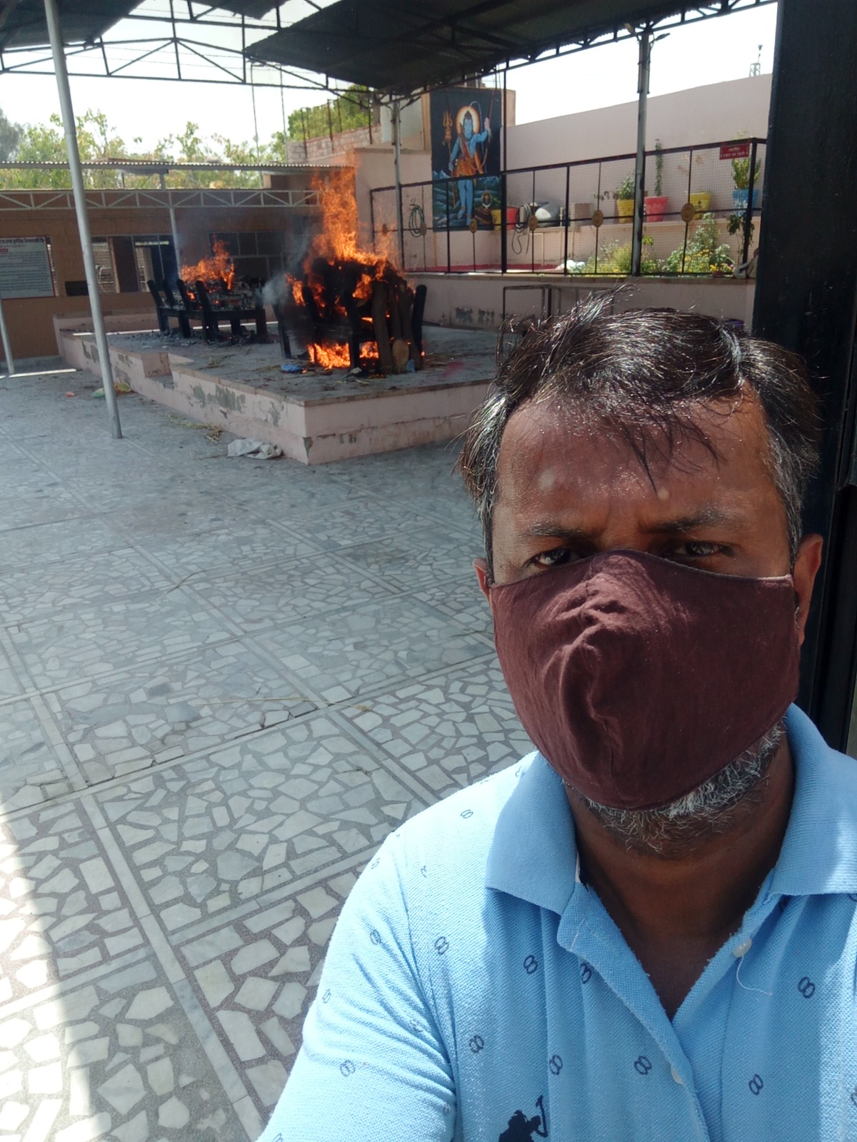 दिवंगतो का विधिवत अंतिम संस्कार करवाया गया एंबुलेंस की आवाज सुनते ही सतर्क हो जाता तथा कुछ देर एम्बुलेंस को रोककर उस स्थान को सेनेटाईज करता जिस स्थान पर अंतिम संस्कार किया जाना था। फिर दिवंगत के परिजन जो एक दो साथ में आते थे उनके सहयोग से दिवंगत का अंतिम संस्कार करवाता साथ ही परिजनों के जो पीपीई किट/गल्ब्स पहने होते थे उन्हें भी बाहर फिकवाने की बजाय अग्नि के सुपुर्द करवा देता था ताकि कोई जानवर या मानव इस जानलेवा संक्रमण का शिकार न हो। जैसे ही दाह संस्कार संपन्न होता और परिजन मोक्षधाम को छोड़कर चले जाते, पुनः मेरे द्वारा स्थान के साथ हर उस वस्तु को सेनेटाईज किया जाता था जो परिजनों ने छुआ हो। मेरे इस कार्य से मोहल्ले के लोग भी व्यथी थे दुखी थे उनके मन में भी यही भय था कि कही मै मोहल्ले में कोरोना रोग न फैला दूँ।