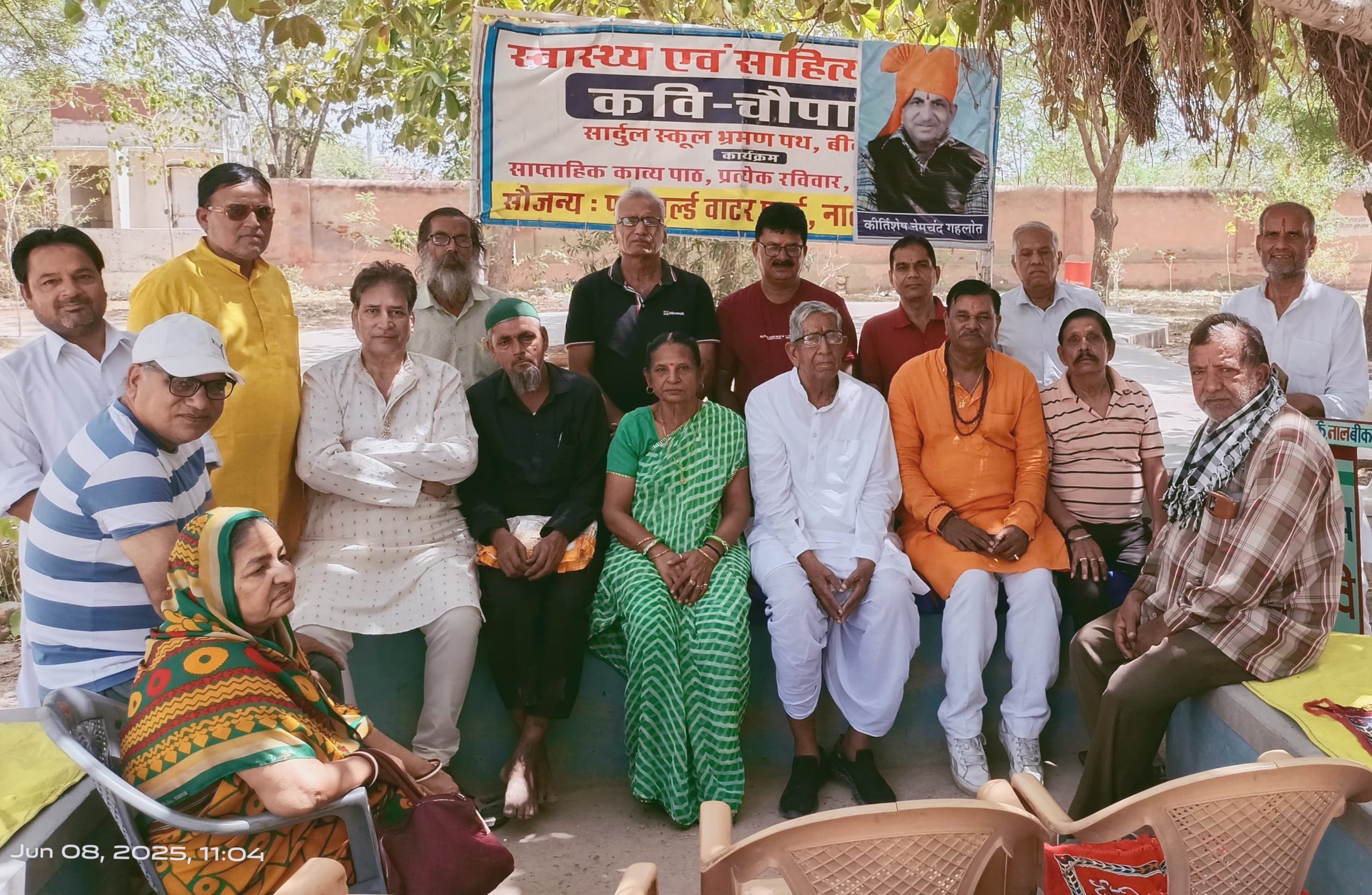 आज के कार्यक्रम में ऋषि नारायण श्री माली, सागर सिद्धिकी, भवानी सिंह राजपुरोहित, महेंद्र सिसोदिया, शिव प्रकाश शर्मा, हनुमान कच्छावा, परमेश्वर सोनी, नत्थू खां, विमला देवी, सुशीला सुथार, भतमाल सुथार, आदि आदि कई गणमान्य साहित्यानुरागी उपस्थित रहे कार्यक्रम का संचालन रामेश्वर साधक ने किया जबकि आभार महेश बड़गुर्जर ने किया।