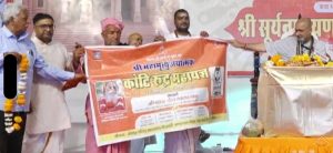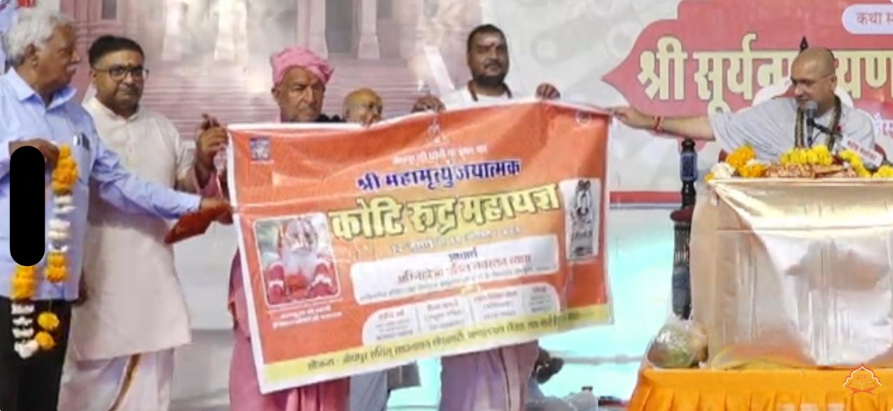 महामृत्युंजय कोटि रुद्र हवन के बैनर का विमोचन डॉ रामप्रसाद महाराज ने किया