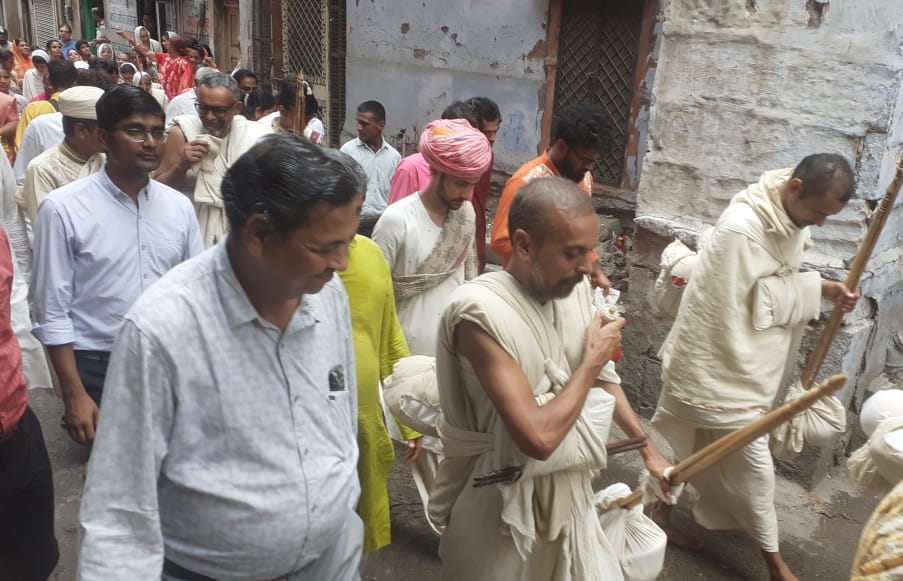 विश्वरत्न विजय आदि 33 साधु साध्वी जालोरी गेट जलते दीप भवन से श्रावक स्व .मख्तूरमल अनूपम चौरडिया परिवार निवास स्थान से विशाल शोभायात्रा के साथ क्रिया भवन पहुंचे। यहां पर अक्षत वधावणा किया गया। गुरु भक्तों को गुरुजी से आशीर्वाद दिया। तपागच्छ संघ प्रवक्ता धनराज विनायकिया ने बताया कि जैनाचार्य रामचन्द्रसूरीश्वर महाराज समुदाय के आचार्य तपोरत्नसूरीश्वर महाराज के शिष्यरत्नों एवं साध्विवृंदों व श्रावक श्राविकाओं तथा कई भक्तों के साथ ढोल ढमाके, हाथी-घोड़ा, ऊंट कच्छी घोडी, बग्घियों के साथ शोभायात्रा जालोरी गेट, नृसिंह दडा, कबूतरों का चौक, सोनारों का बास, त्रिपोलिया बाजार, चांदी हॉल होते हुए क्रिया भवन पहुंची।