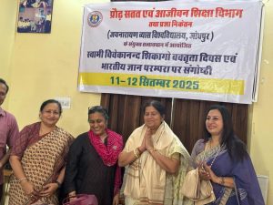 कार्यक्रम के प्रारम्भ में विकलांग पुनर्वास एवं प्रशिक्षण संस्थान की अध्यक्ष प्रो मीना बर्डिया ने भारतीय ज्ञान परम्परा के प्रसंग में प्रो सरोज कौशल के काव्य संग्रह भारत गाथा के महत्त्व को रेखांकित किया। वर्तमान की विकटता में ‘भारत गाथा ‘ संजीवनी के समान हृदय को आह्लादित करती है। इस समारोह में श्रीमती ईरा सिसोदिया ने भी विचार प्रकट किये। इससे पूर्व स्वामी विवेकानंद की शिकागो वक्तृता पर कला संकाय के पूर्व अधिष्ठाता प्रो कन्हैयालाल राजपुरोहित ने शोधपूर्ण व्याख्यान प्रदान किया। उन्होंने विवेकानंद के व्याख्यान की अनेक विशेषताओं को रेखांकित किया और यह भी बताया कि अमेरिका पहुँचने में स्वामी जी के मार्ग में क्या क्या कठिनाइयाँ आईँ। कार्यक्रम के अन्त में आजीवन एवं सतत शिक्षा विभाग के निदेशक डॉ ओ पी टाक ने धन्यवाद ज्ञापित किया। प्रज्ञा निकेतन छात्रावास के विद्यार्थियों ने सक्रिय भागीदारी की।