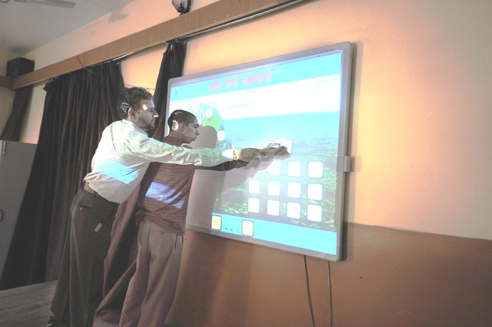 स्मार्ट क्लासरूम में प्रोजेक्टर और शैक्षणिक वीडियो द्वारा कहानियां, कविताएं और चित्रों से सीखने का अवसर मिलता है।