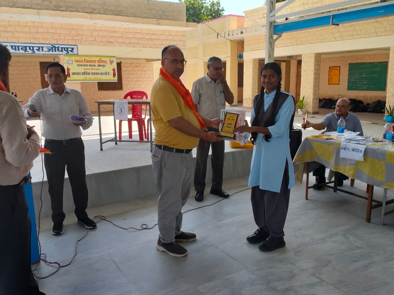 वरिष्ठ वर्ग में राजकीय उच्च माध्यमिक विद्यालय पाबूपुरा की कक्षा ग्यारहवीं की छात्रा कविता पुत्री रमेश तथा कक्षा बारहवीं की छात्रा मनीषा पुत्री धर्म राम ने प्रथम स्थान प्राप्त किया। द्वितीय स्थान राजकीय उच्च माध्यमिक विद्यालय रेजिडेंसी रोड की पूनम पुत्री किशन नायक कक्षा दसवीं व गुलाल पुत्री कालू राम कक्षा नौवीं ने प्राप्त कियाl इस कार्यक्रम में भारत विकास परिषद की तरफ से रामसरण दुग्गल, सुरेश कुमार दुग्गल, डॉ विनोद कुमार चावला, मधुसूदन व्यास, उपेंद्र सिंह चौहान, इंदर सिंह राजपुरोहित, सुशील बवेजा, ओमप्रकाश खंडेलवाल, पीसी कटारिया, बाला भार्गव एवं सीमा शर्मा उपस्थित रहे l कार्यक्रम का संचालन डॉ. विनोद कुमार चावला ने किया। प्रतियोगिता उच्च माध्यमिक विद्यालय पाबूपुरा के प्रिंसिपल श्याम सुंदर सोलंकी व स्कूल के संपूर्ण स्टाफ के सहयोग से सफलतापूर्वक संपन्न हुई l