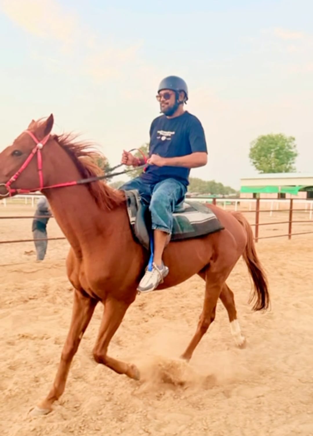(किलिमंजारो फतेह करने के लिए अक्षस हॉर्स राइडिंग, साइकिलिंग और स्विमिंग का कठोर अभ्यास कर रहे हैं।)
