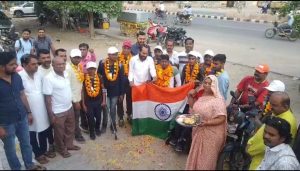 (पतासलू पर 101 फीट तिरंगा फहराकर लौटने के बाद जोधपुर में दिव्यांगों के साथ अक्षय का भव्य स्वागत किया गया। )