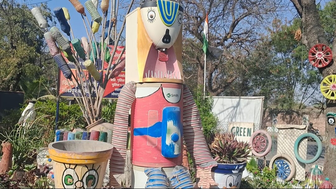 संजय भंडारी: कचरा हमारे समय का सबसे बड़ा सवाल है—इसे बोझ समझेंगे तो बोझ रहेगा, उसे साधन बना दें तो सृजन होगा। ब्लॉक-1 में हमने ‘कबाड़ से जुगाड़’ की स्थायी प्रदर्शनी बनाई है—1000 से अधिक आइटम। बेकार गत्तों से इंडिया गेट, राम मंदिर, लाल किला, ताजमहल, एफिल टॉवर जैसी संरचनाएँ; कांच की बोतलें, टायर, मटकियां, पुराने पेन- ब्रश, और यहां तक कि बेकार तौलियों पर सीमेंट-पानी चढ़ाकर बनीं ‘आर्ट-पीसेज़’। पुराना टीवी भी रखा है—हमारा स्मृतिचिह्न। कबाड़ से एक रोबोट भी बनाया गया है। मेरे लिए यह केवल कला नहीं, बल्कि शहरी कचरे के साथ ‘क्रिएटिव डायलॉग’ है—कि फेंकी हुई चीज़ें भी मूल्यवान बन सकती हैं।