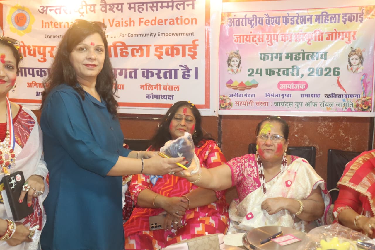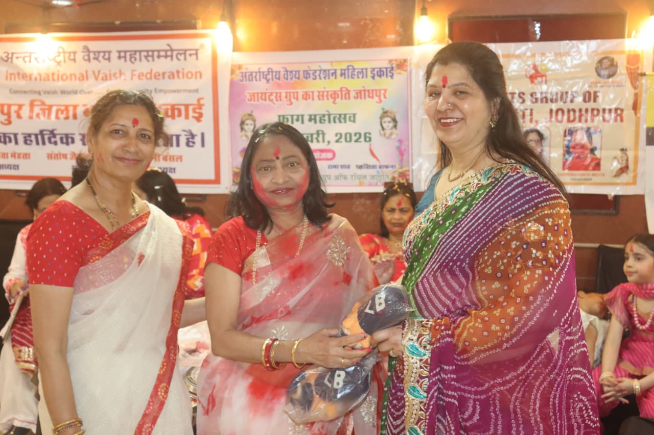 तत्पश्चात सभी सदस्यों ने फाग गीतों पर जोरदार धमाकेदार डांस की प्रस्तुति की एवं सामूहिक डांस किया। सभी ने एक दूसरे पर गुलाल लगाते हुए फूलों की बौछार की। फूलों की होली खेलने के पश्चात सभी सदस्यों ने हाऊजी रामा शाह ने खेलाई एवं अनिता मेहता की तरफ से 25 पुरस्कार दिए गए एवं उसके बाद होली संबंधी क्वेश्चनरी राउंड कंचन सराफ द्वारा पूछा गया गया, जिसमें सभी को अनिता मेहता की तरफ से पुरस्कृत किया गया । तत्पश्चात गीत और नृत्य की प्रतियोगिता रखी गई जिसके निर्णायकगण श्रीमती अरुण राठी, श्रीमती चंद्र सुराणा एवं श्रीमती सुचिता कानूनगो थी । सभी सदस्यों को मेहरानगढ़ की अध्यक्षा साधना मणोत द्वारा इनाम दिया गया। डांस ग्रुप में मीनाक्षी, नलिनी बंसल तथा आशा सिंघवी, तरुणा एवं गीत में शकुंतला, रंजना, अंजू गांधी, कांता गुलेच्छा, निर्मला गुप्ता इत्यादि को पुरस्कृत किया गया। महिला मीडिया प्रभारी राखी पुरोहित को दुपट्टा ओढ़ा कर तथा जज चंद्र सुराणा और दुपट्टाा पहन कर अनिता मेहता ने सम्मानित किया । सहयोगी संस्था जायंट्स ग्रुप ऑफ रॉयल जागृति की अध्यक्षा रक्षित बाफना, संस्कृति ग्रुप की अध्यक्षा रामाशाह, मीनल गुप्ता, फेडरेशन की सचिव संतोष जैसलमेरिया, कोषाध्यक्ष नलिनी बंसल, सह सचिव रंजना गांधी सभी के सहयोग से कार्यक्रम सफलतापूर्वक संचालित हुआ एवं अपना पूर्ण सहयोग दिया। जायंट्स ग्रुप ऑफ संस्कृति की अध्यक्षा रामशाह द्वारा कार्यक्रम आयोजक अध्यक्षा वैश्य फेडरेशन की अध्यक्षा अनिता मेहता को दुपट्टा ओढ़ा कर स्वागत किया। फूलों की होली के पश्चात कार्यक्रम समाप्ति पर खाने का लुफ्त सभी ने उठाया तथा सभी अतिथियों ने होली की शुभकामनाएं दी और अंतराष्ट्रीय वैश्य संगठन महिला इकाई को भव्य फाग महोत्सव आयोजन पर शुभकामना दी।