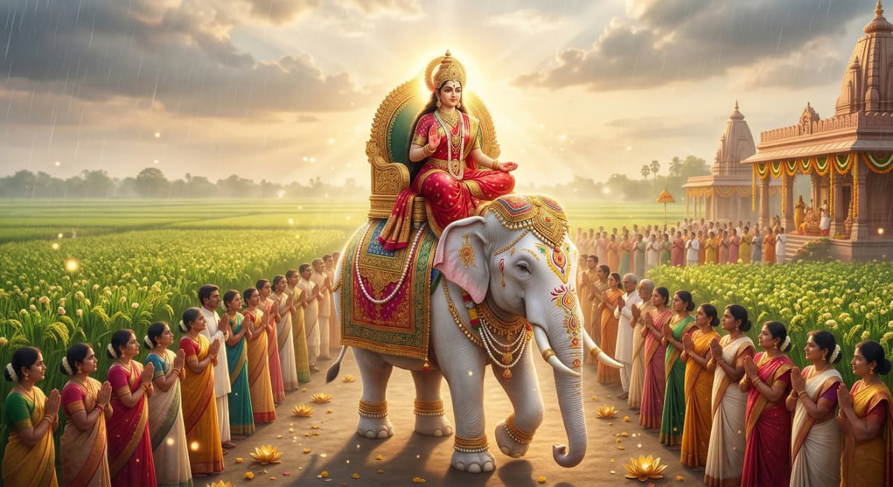 हाथी पर होगी माता की विदाई (वापसी): समृद्धि और शुभ वर्षा का प्रतीक