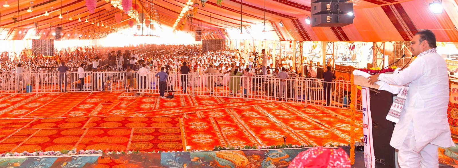 इससे पहले मुख्यमंत्री ने नवनिर्मित कन्या महाविद्यालय के भवन का लोकार्पण किया और आंजणी माता मंदिर में दर्शन कर प्रदेश की खुशहाली की प्रार्थना की। साथ ही, उन्होंने गुरुकुल की बालिकाओं से बालिका शिक्षा एवं महिला सशक्तीकरण के क्षेत्र में लिए गए निर्णयों एवं योजनाओं पर संवाद किया। इस अवसर पर संसदीय कार्य मंत्री जोगाराम पटेल, पंचायती राज राज्य मंत्री ओटाराम देवासी, सांसद पी.पी. चौधरी, लुम्बाराम चौधरी, विधायक हमीर सिंह भायल, जीवाराम चौधरी, अरुण चौधरी, देवनारायण बोर्ड अध्यक्ष ओमप्रकाश भड़ाना, अन्य जनप्रतिनिधिगण सहित पीठाधीश्वर साध्वी भगवती बाईजी, दयाराम जी महाराज, पदमाराम जी महाराज, सुमन सुलभ जी महाराज एवं बड़ी संख्या में गुरुकुल छात्राएं और आमजन उपस्थित रहे।