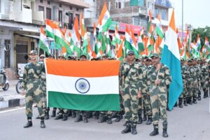 इस उपलक्ष्य पर एमए जॉए, उप महानिरीक्षक महोदय ने बताया कि पिछले कई वर्षाे से हर घर तिरंगा अभियान का आयोजन किया जाता रहा है। इस वर्ष भी सीमा सुरक्षा बल इस अभियान से जुडकर देश की जनता के साथ मिल कर इस पर्व को मना रही है। उन्होंने यह भी वताया हमारा राष्ट्रीय ध्वज पूरे देश को एक सूत्र में बांधता है व हमें अपने अधिकारों के साथ अपनी जिम्मेवारीयो सेे भी अवगत करवाता है। यह अभियान सीमा सुरक्षा बल के नये प्रशिक्षणाथिओं के लिये भी प्रेरणा का स्त्रोत है जो आगे चल कर देश की सीमाओं की रक्षा करेंगे।