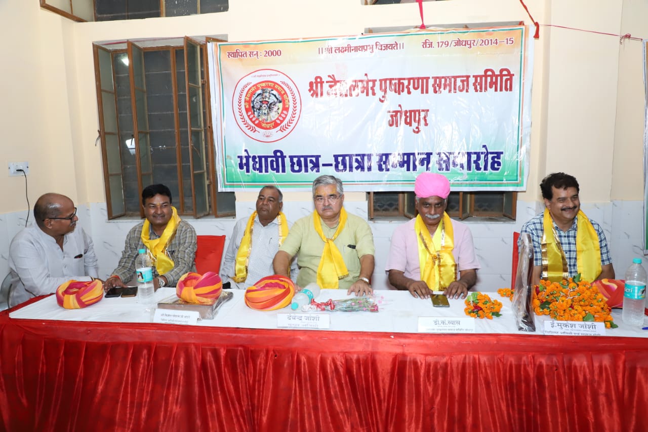 जैसलमेर पुष्करणा समाज जोधपुर के मेधावी छात्र- छात्राओं को सावन उत्सव में सम्मानित किया गया। मुख्य अतिथि सूरसागर विधायक देवेन्द्र जोशी ने कहा कि देश में आज कल कई प्रकार के नशे हो गये हैं। जिनसे बचने के लिए अभिभावकों को चाहिए कि वे अपने बच्चों पर विशेष घ्यान दें जिससे बच्चा नशे से दूर रहे क्यों कि एक नशा मुक्त समाज सदैव प्रगति करता है ।